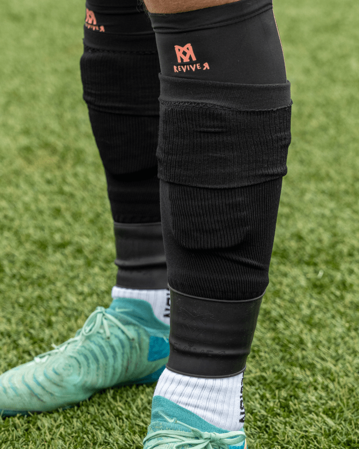 Nos protège-tibias Reviver sont conçus pour offrir un maintien exceptionnel grâce à leur technologie anti-glisse intégrée. Contrairement aux modèles traditionnels, ils ne nécessitent pas de straps supplémentaires et restent fermement en place, même lors des mouvements les plus intenses.